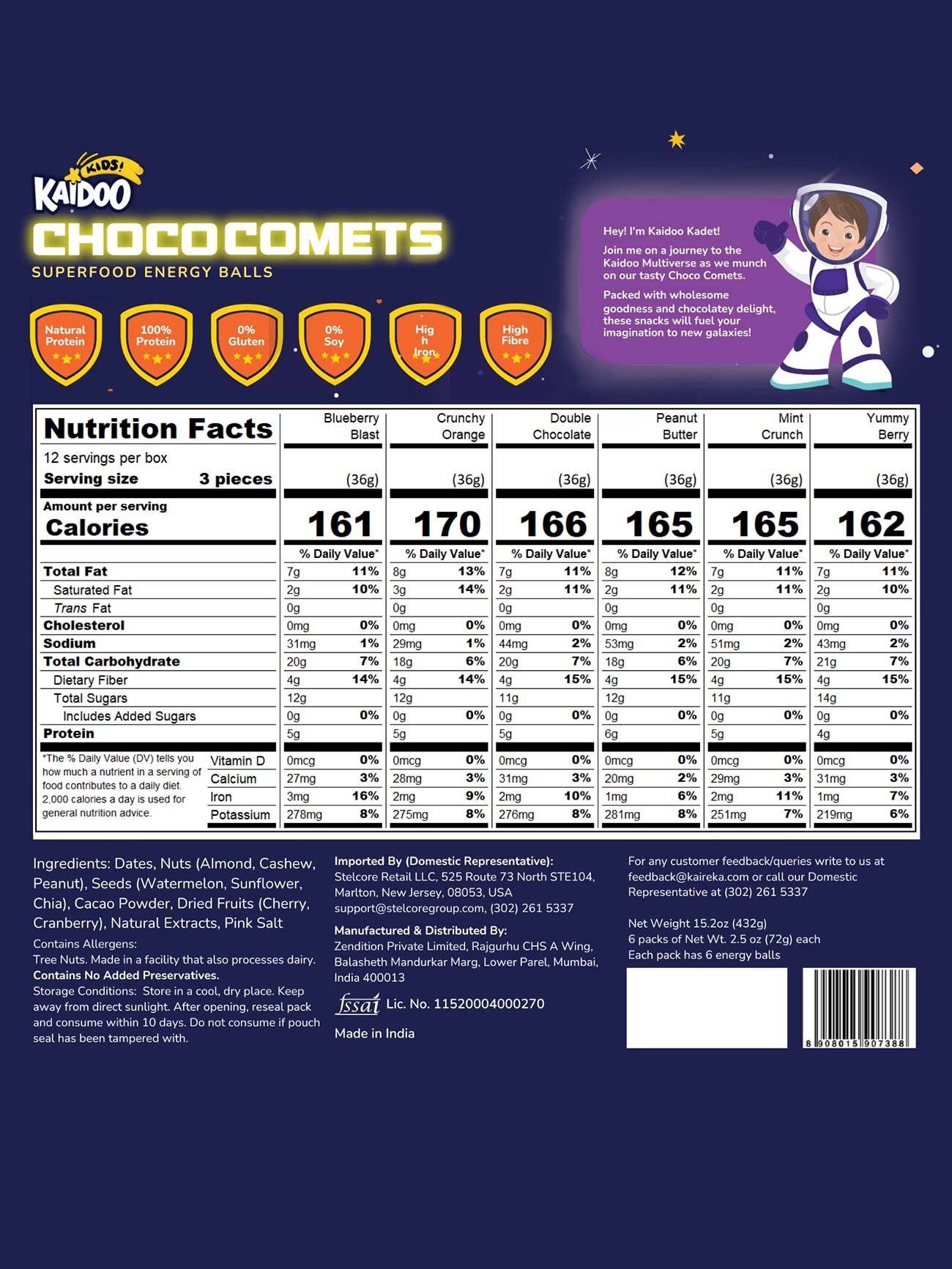 Zesty orange meets crispy crunch in every bite! These 8 chocolate-filled bites are made with wholesome ingredients, no added sugar, and no preservatives. Packed in a fun rocket pouchβperfect for snack time adventures!