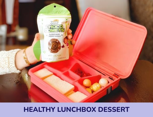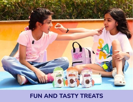 A variety pack of 3 flavours of Choco Comets. The top selling Double Chocolate, the yummy Crunchy Orange and refreshing Mint Crunch! These chocolate-filled bites are made with wholesome ingredients, no added sugar, and no preservatives. Packed in a fun rocket pouch—perfect for snack time adventures!