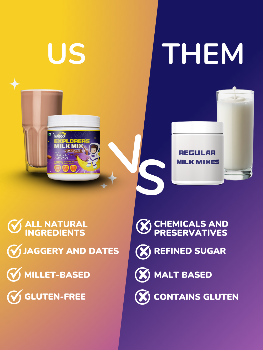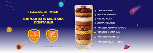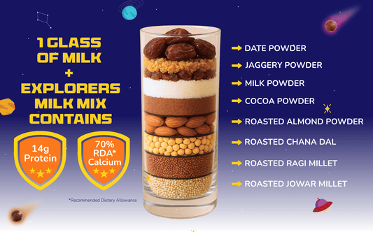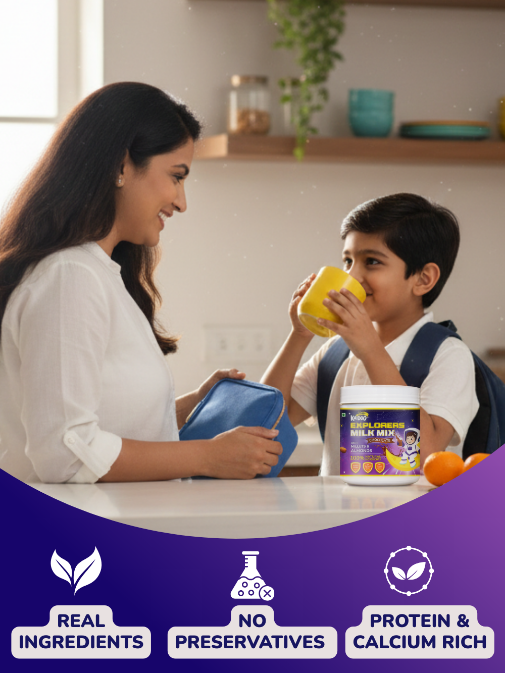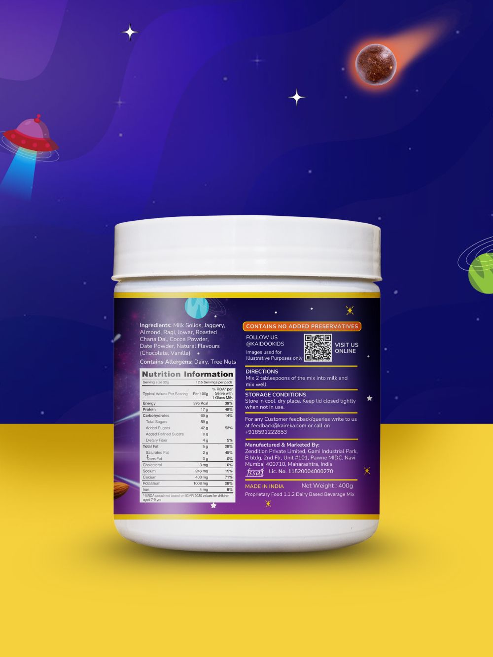 A nourishing milk mix powder made with natural, wholesome ingredients for growing minds and bodies. Rich in protein and essential nutrients, itβs a tasty way to power up milk either at breakfast or after dinner. No refined sugar, no preservatives, no added artificial supplements, no premix of vitamins & minerals - only natural ingredients.