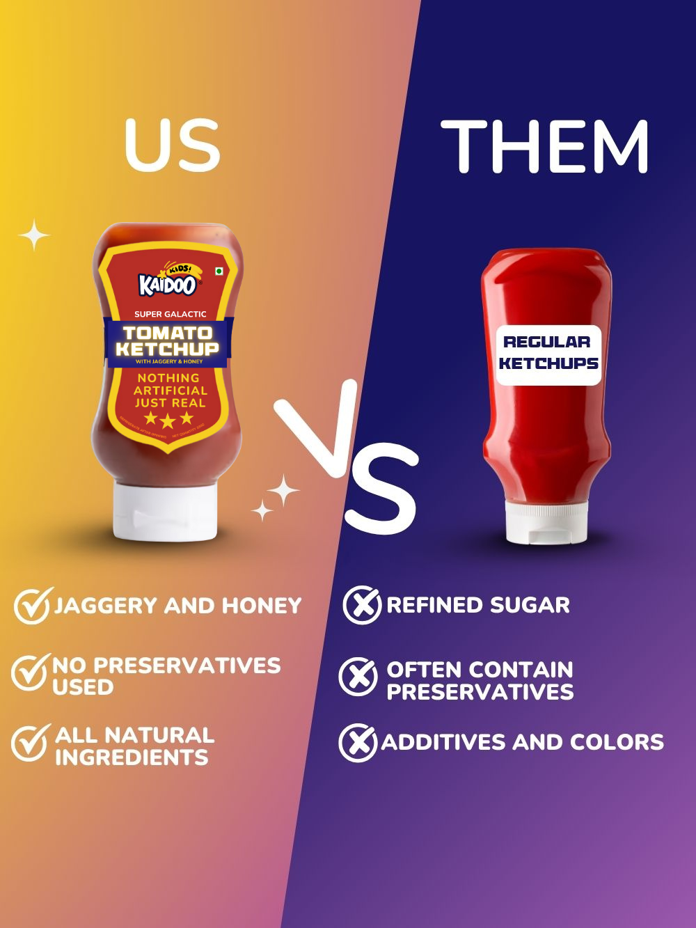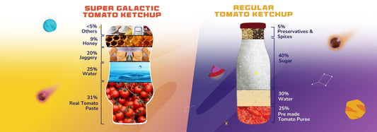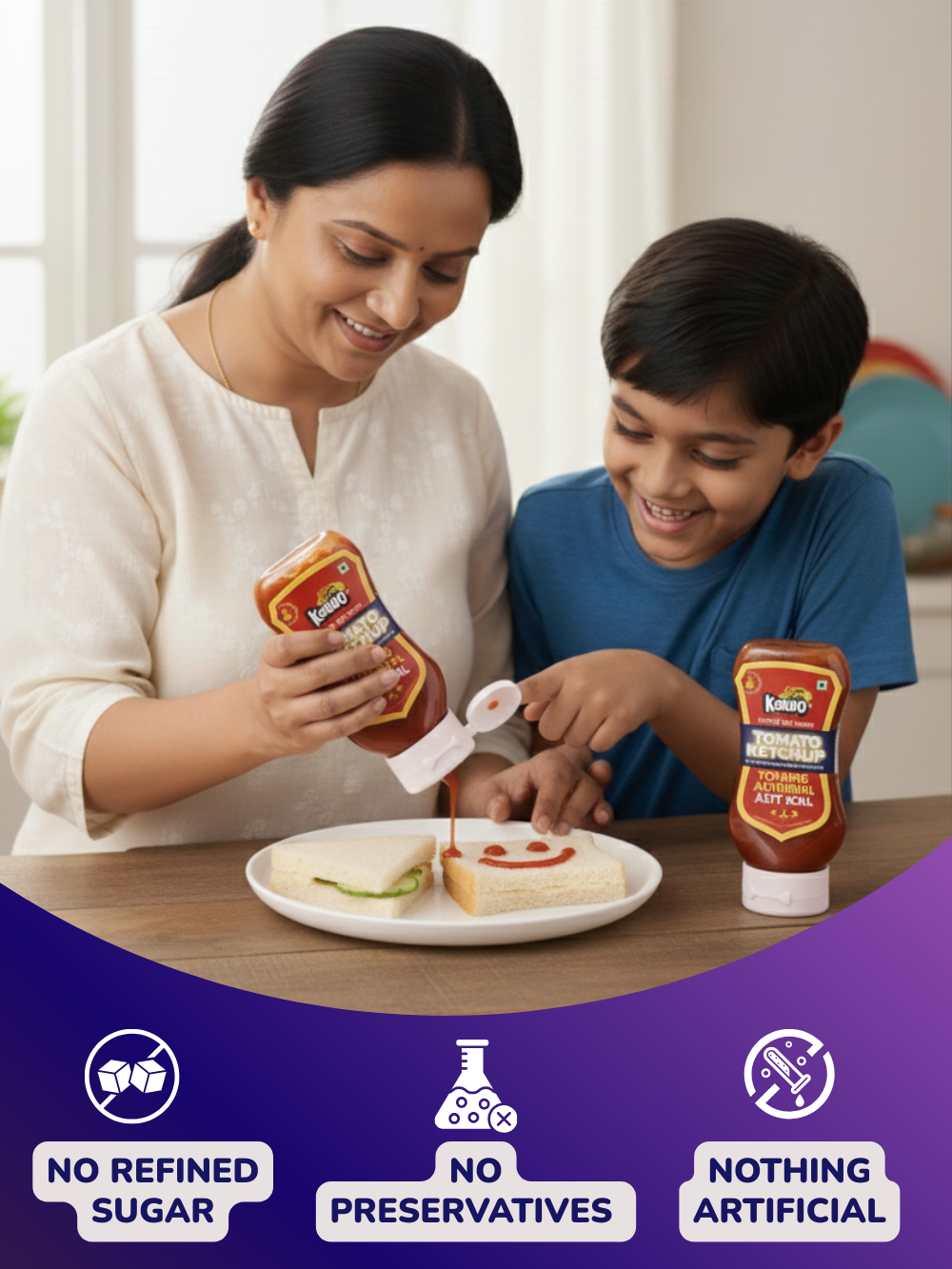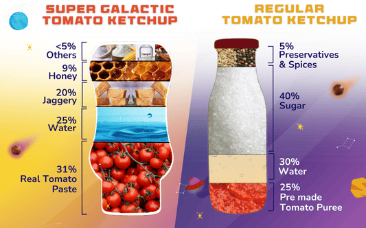 A deliciously sweet and tangy tomato ketchup made for kids, with a better-for-you twist. Sweetened naturally with jaggery and honey, this tomato sauce is free from refined sugar and full of flavor. Perfect for dipping, spreading, or adding a burst of taste to everyday meals, this is the best tomato ketchup without preservatives!